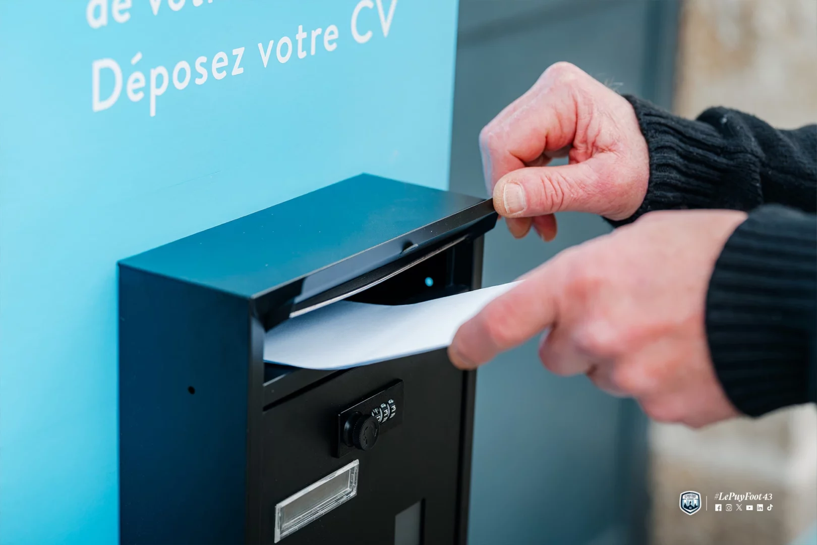 Τοποθετημένο κατά τη διάρκεια της εβδομάδας μπροστά από το επίσημο κατάστημα του συλλόγου, αυτό το κουτί επιτρέπει σε όλους να υποβάλουν το βιογραφικό τους απλά και γρήγορα.