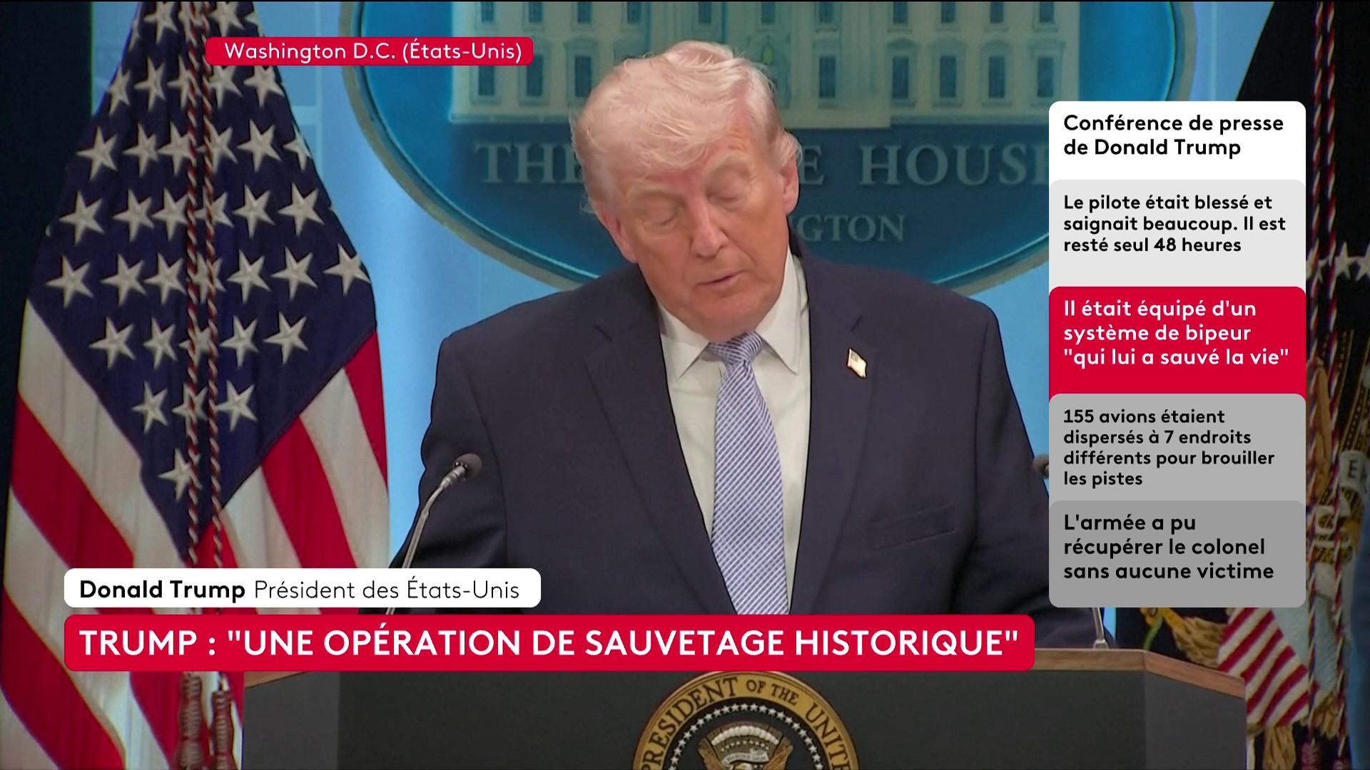 Για να ανακτήσει τον δεύτερο πιλότο, ο Ντόναλντ Τραμπ το ανακοινώνει “155 συσκευές” ont été mobilisés, dont»βομβαρδιστικά, αεροπλάνα ανεφοδιασμού κ.λπ. “Θέλαμε να εξαπατήσουμε τον εχθρό και να τον κάνουμε να πιστέψει ότι ο συνταγματάρχης μας ήταν αλλού. Στείλαμε τα διαφορετικά αεροπλάνα μας σε επτά διαφορετικά μέρη.” για να μην καθοδηγήσει τους Ιρανούς στον πιλότο, που έμεινε κρυμμένος για 48 ώρες, συνεχίζει. Η πρώτη αποστολή διάσωσης κινητοποίησε 21 αεροπλάνα.