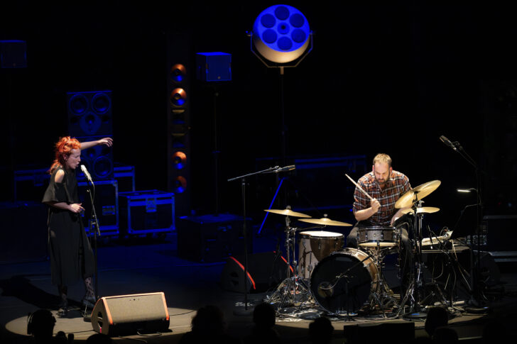 Παπούτσια πατώντας στα πόδια τους, ο Julien Desprez και η Alvise Sinivia είναι με σορτς και σε τέλεια συνέργεια στο φασαριόζικο Exu από τον Desprez. Σε αυτό το κομμάτι για ταπ χορό, ντραμς, φωνή και ηλεκτρονικά, οι δύο ερμηνευτές στο μπροστινό μέρος της σκηνής διπλασιάζουν την ενέργειά τους, μονοπωλώντας τα μάτια και τα αυτιά για ένα καλό δεκάλεπτο.