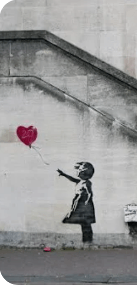 Η ποίηση του κόκκινου μπαλονιού βρίσκεται στο έργο του καλλιτέχνη του δρόμου Bansky το 2002. Διάλεξε ένα κοριτσάκι και έδωσε στο μπαλόνι σχήμα καρδιάς, αλλά το μήνυμα δεν είναι το ίδιο όπως στην παλιά ταινία από τις γειτονιές μας;